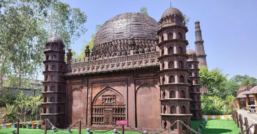 Spread over about 8.5 acres, the Park features 22 replicas—including the Taj Mahal, Qutub Minar, Konark Temple, Mysore Palace, Meenakshi Temple, and Gateway of India—painstakingly crafted from roughly 350 tonnes of metal waste by around 200 artists in just 22 months.